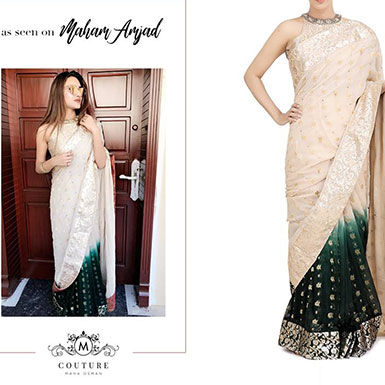 Throwback to Maham Amjad looking absolutely breathtaking in an elegantly embellished, halter neck blouse #Saree from #MCoutureFormals