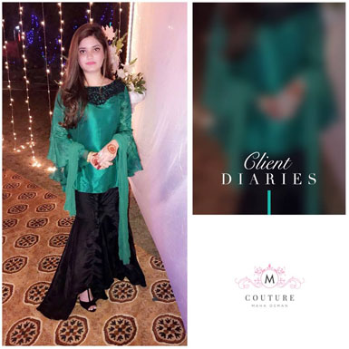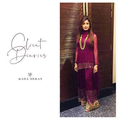 Our client looked beyond stunning in a deep vine colored hand embellished shirt & trouser set from our exclusive collection of formals!