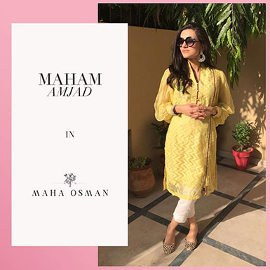 Maham Amjad paints a beautiful picture in this gorgeous yellow kurta set from Maha Osman.